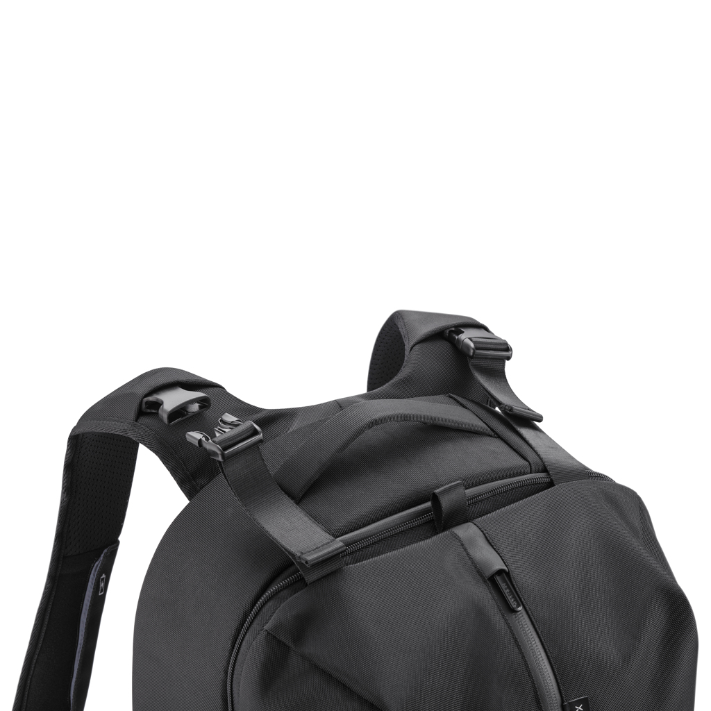 - Quickly convert this backpack from business to gym style by expanding the front pocket from 16 to 24 litres.