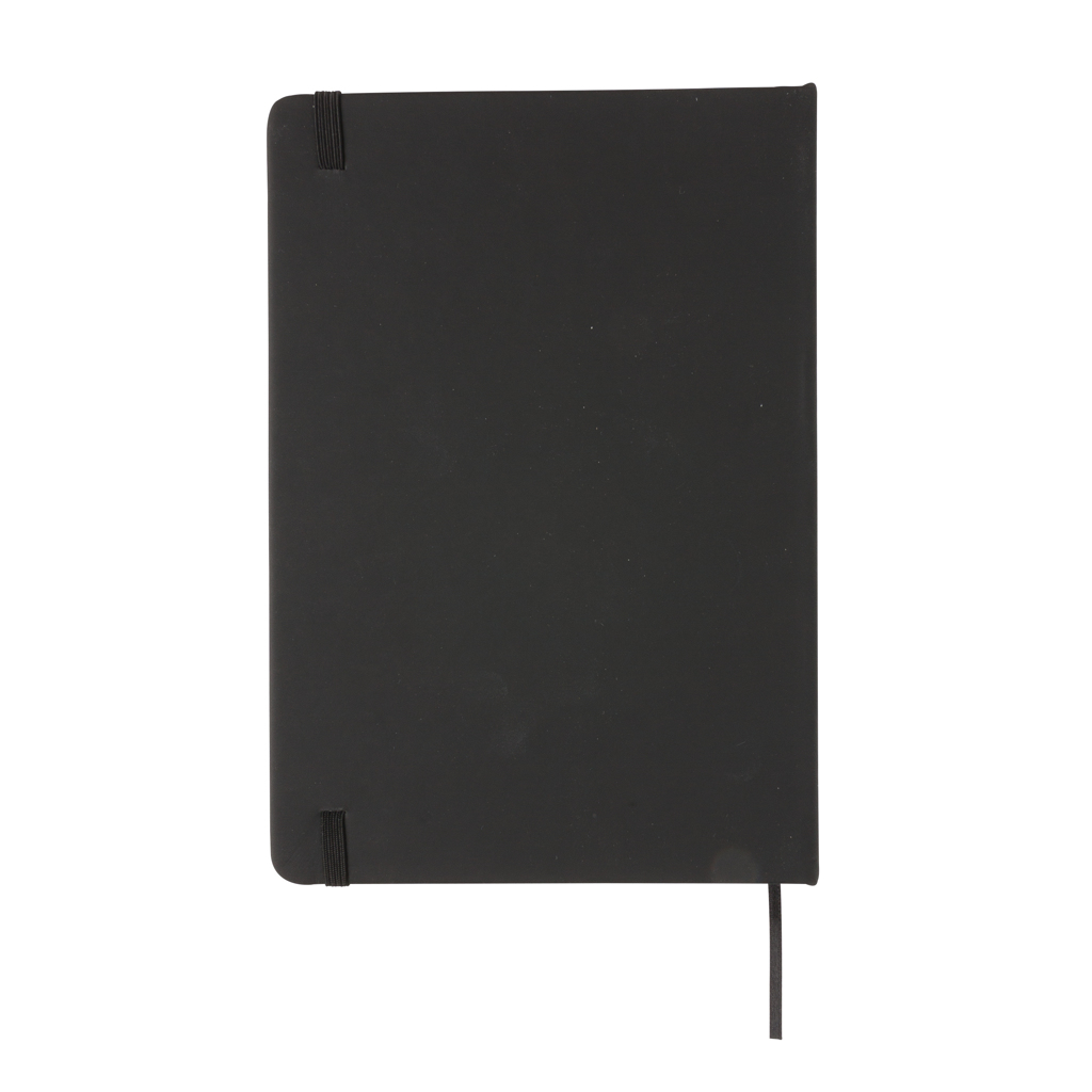• Ruled A5 hardcover PU classic notebook with elastic closure and black bookmark ribbon.
